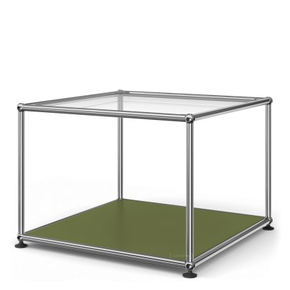 USM Haller Side Table 50 Upper panel glass, lower panel metal|Olive green RAL 6003