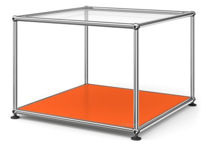 USM Haller Side Table 50, Upper panel glass, lower panel metal, Pure orange RAL 2004