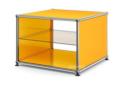 USM Haller Side Table with Side Panels 50 cm|with interior glass panel|Golden yellow RAL 1004