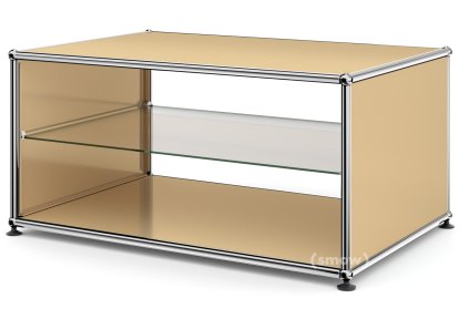 USM Haller Side Table with Side Panels, 75 cm, with interior glass panel, USM beige