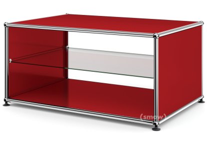 USM Haller Side Table with Side Panels, 75 cm, without interior glass panel, USM ruby red
