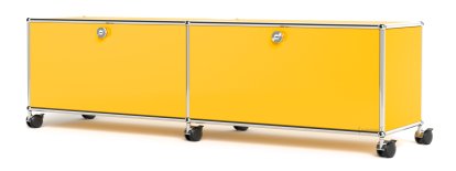 USM Haller TV-/HiFi-Lowboard, Customisable, Golden yellow RAL 1004, With 2 drop-down doors, Without cable entry hole