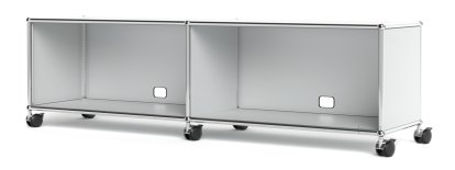 USM Haller TV-/HiFi-Lowboard, Customisable, USM matte silver, With 2 drop-down doors, With cable entry hole bottom centre