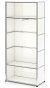 The secret of the USM Haller shelving system's enduring popularity is its modular concept: from just three basic elements all manner of objects can be constructed, in almost every conceivable form. Panels of metal or glass are added to a basic structure of chrome plated metal tubes connected with chrome plated brass balls. Thanks to its modularity and timelessness USM fits in every room, while its flexibly adapts to the needs of your home and helps you to organise your home with stylish storage space according to your preferences and requirements.