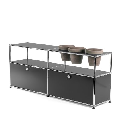 USM Haller Plant World Sideboard, Anthracite RAL 7016, With 2 drop-down doors, With 3 pots on the right, Basalt