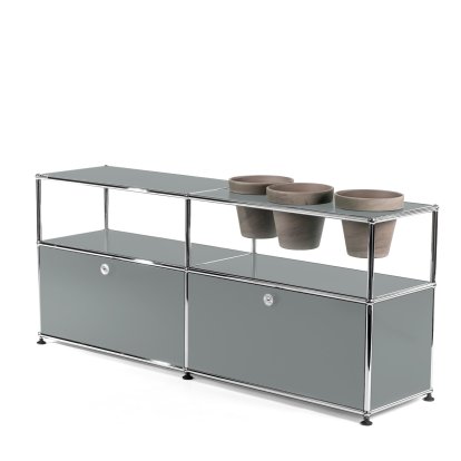 USM Haller Plant World Sideboard Mid grey RAL 7005|With 2 drop-down doors|With 3 pots on the right|Basalt