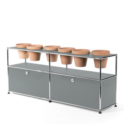 USM Haller Plant World Sideboard, Mid grey RAL 7005, With 2 drop-down doors, With 6 pots, Terracotta