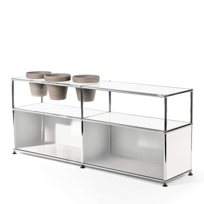 | Variants | Optionally available with open compartments at the bottom or 2 drop-down doors, with 3 pots on the right/left or with 6 pots over the entire horizontal. Pots available as with terracotta or basalt coloured variants. Also available without plant pots as the USM Haller Sideboard L with extension and many other individual configurations. |