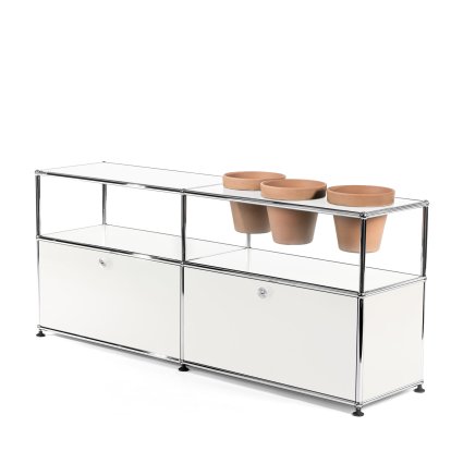 USM Haller Plant World Sideboard, Pure white RAL 9010, With 2 drop-down doors, With 3 pots on the right, Terracotta