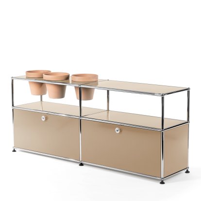 USM Haller Plant World Sideboard, USM beige, With 2 drop-down doors, With 3 pots on the left, Terracotta