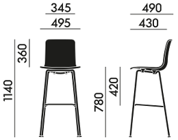 The HAL bar stool is available in two heights, as a kitchen stool and a bar stool.