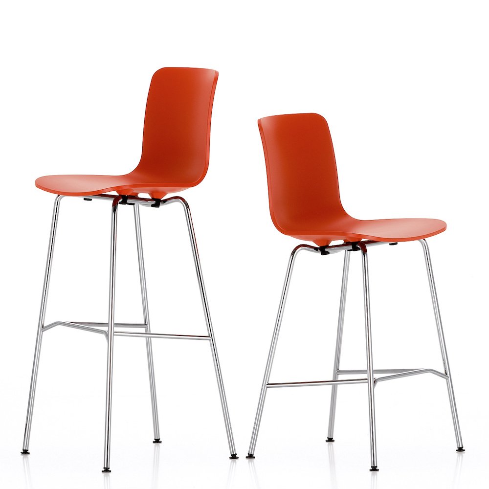The HAL bar stool, as with the rest of the HAL collection, is the result of a joint project between designer Jasper Morrison and the Swiss furniture manufacturer Vitra. A collaborations that stands in a long history of collaborations between Vitra and leading contemporary furniture and product designers that began in the second half of the 20th century with the likes of George Nelson, Ray & Charles Eames, and Verner Panton and continued with contemporary creatives contemporaries including Hella Jongerius, Maarten van Severen, or Morrison. Whether preserving the design heritage or promoting design innovation, Vitra's mission is the same: good design that helps in everyday life and demonstrates how beautiful it can be. Beyond products per se Vitra also maintains the the Vitra Design Campus, home to the the Vitra Design Museum, while the company operates according to specially developed and certified quality and environmental management system.