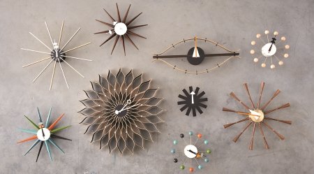 The Vitra Turbine Clock belongs to the family of wall clocks with which George Nelson aimed to bring modern design into American homes, while simultaneously embracing the spirit of optimism in the 1950s. The gracefully sculpted Vitra Turbine Clock features 12 radiating sheets of brass, which are arranged so that the clock can be easily read even without exact marking time. The Vitra clock is supplied with a modern quartz movement and matching battery.
