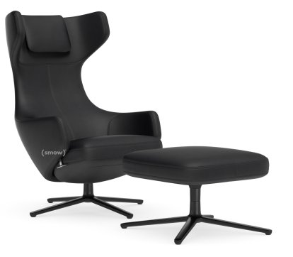 Grand Repos Lounge Chair Chair Grand Repos & Ottoman|Leather Premium F nero|45 cm|Basic dark