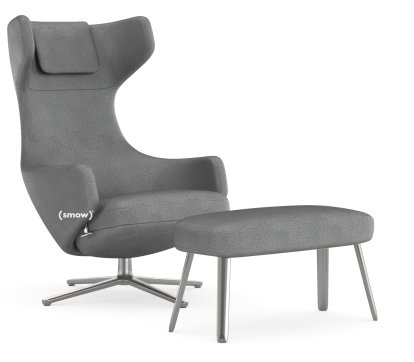 Grand Repos Lounge Chair, Chair Grand Repos & Ottoman, Fabric Cosy 2 Classic Grey, 45 cm, Polished