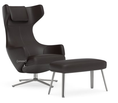 Grand Repos Lounge Chair, Chair Grand Repos & Ottoman, Leather Premium F chocolate, 45 cm, Polished