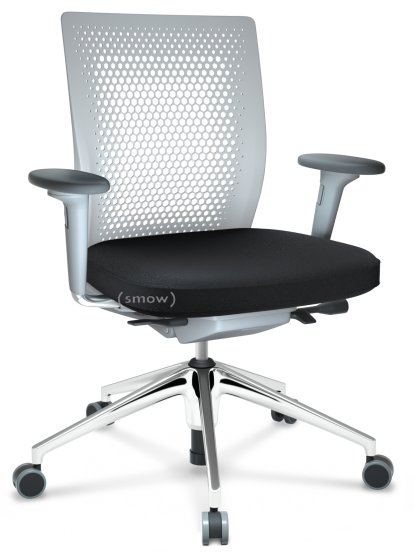 ID Air Soft grey|Plano fabric-66 nero|Soft grey|5 star foot, polished aluminium|With 2D armrests|Soft castors for hard floor surfaces