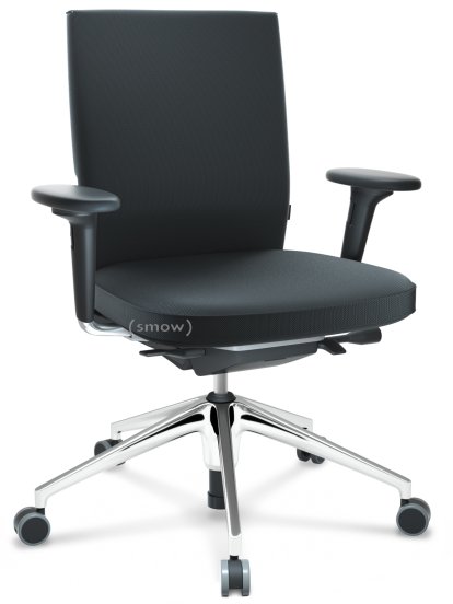 ID Soft FlowMotion-with tilt mechanism, with seat depth adjustment|With 2D armrests|5 star foot, polished aluminium|Basic dark|Silk mesh seat and back|Nero|Hard castors for carpets