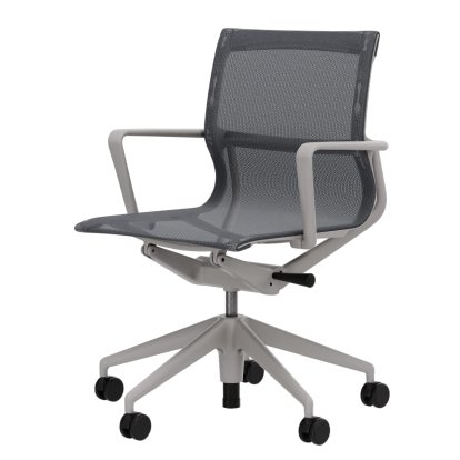 Manufactured by Vitra, the Physix office chair by Alberto Meda is in good company. Since 1953, Vitra have produced contemporary designer furniture and have thus gained extensive knowledge in the field. And indeed one of Vitra's earliest chairs, the EA 117 aluminium chair by Charles and Ray Eames,is the formal godfather of Alberto Meda's Physix. In addition to the Eames designs Vitra produce and distribute furniture classics by designers such as Verner Panton, Isamu Noguchi and the Bouroullec brothers. Office furniture has part of the Vitra portfolio since the 1970s, the company's first office chair being the Vitramat by Wolfgang Deisig launched in 1976 at Orgatec Cologne. Although ergonomics was on everyone's lips even then, the design of office furniture hadbeen given little attention. Vitra office chairs do things differently, placing as they do and did just as much emphasis on aesthetics as function.