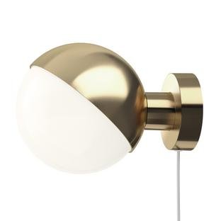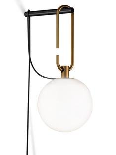 | Material | Shade: mouth-blown glass, satin white Suspension: brass, brushed Wall hanger: aluminium, black powder-coated |