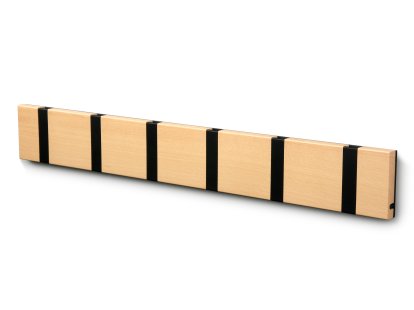 The Knax coat rack from the Danish manufacturer LoCa was designed by Harrit & Sørensen A/S and impresses with its simple yet elegant design. The aluminium hooks can be pulled out when needed and disappear in the wooden strip when not in use.